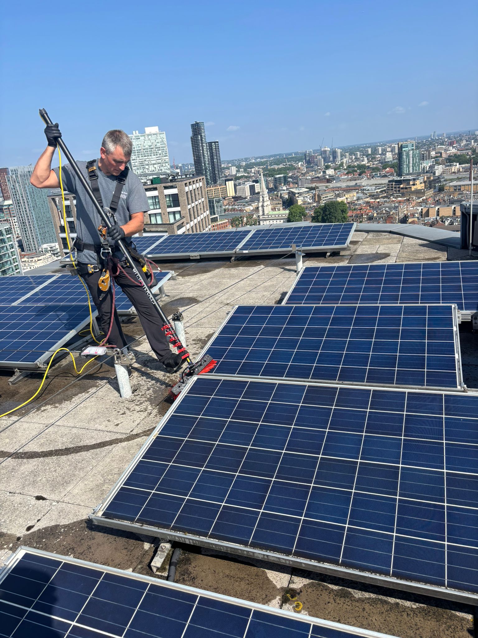 Our professional solar panel cleaning services cover London and all surrounding areas. With a mixed selection of solar panel cleaning methods, we’ll make sure we provide you with best solution for you requirements. We can use reach and wash for solar panel cleaning. With our years of experience we’ll leave no window unclean and leave your building looking its best.